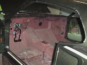 Next to go in was the firewall pad. There isn't an original looking reproduction for this part. What I did was clean the