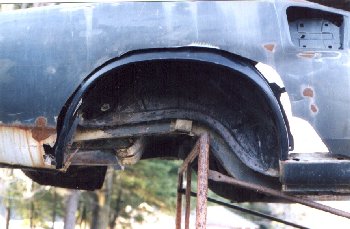 Here is the right rear quarter in its original state. Some hack had filled the big rust hole that