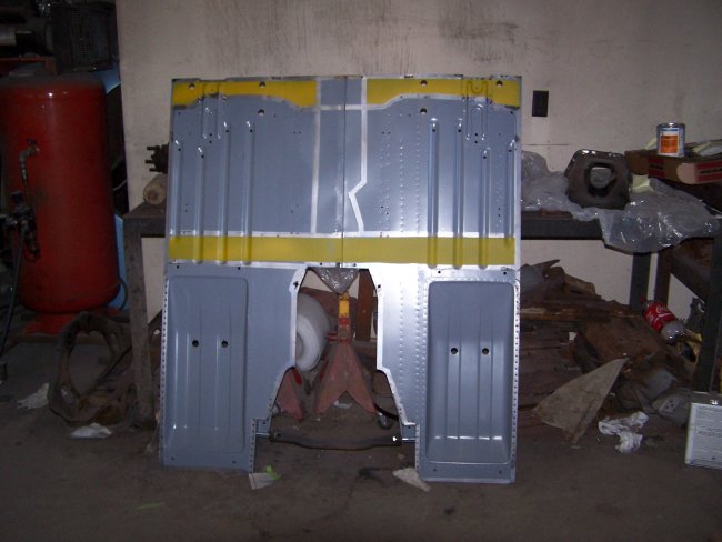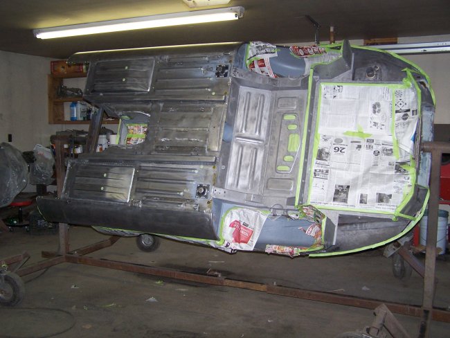 With the inner tocker panels installed the tub was ready for the floors. But first the interior was primed. The under dash area is hard to get at with the floors installed so this was the
