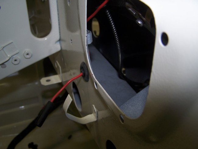 39) The wiring for the bonnet plug is strapped to the bonnet frame as shown here. Care must be take to ensure that enough of the wire is loose so that the plug will reach the socket on the bonnet.