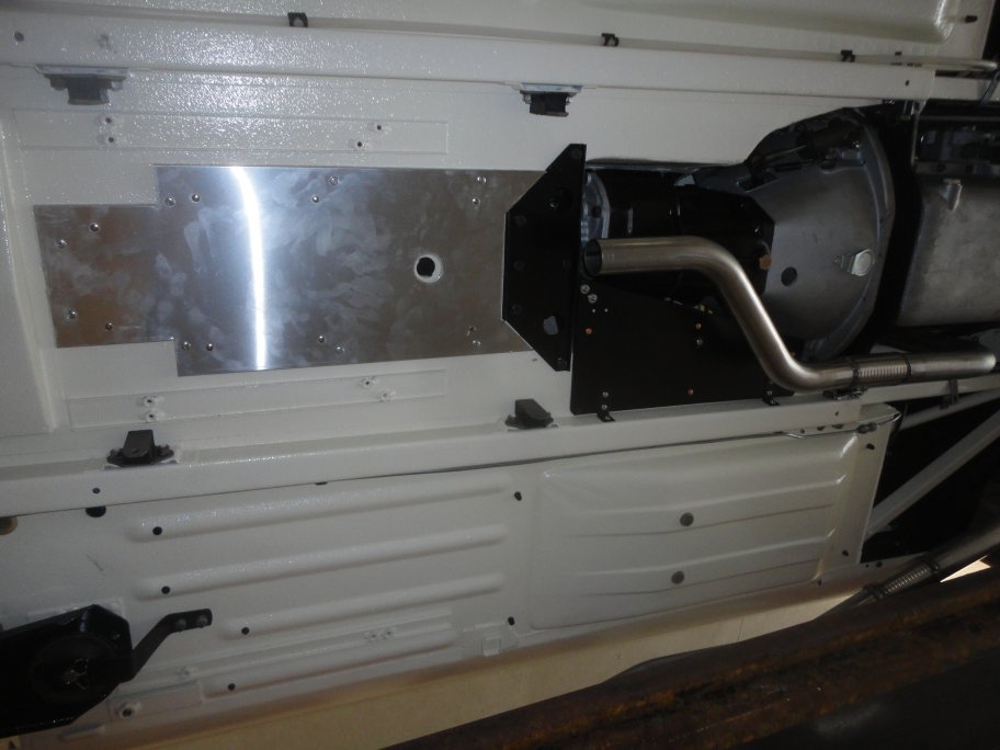 14) Before the exhaust went in, it was necessary to install the heat shields. I believe the original ones were made from asbestos. One of the heat shields (the silver one)