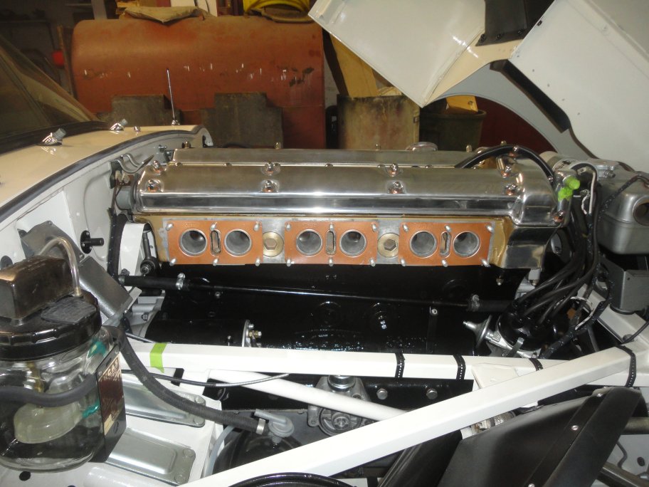 know this at first until I recently saw a picture on the web. Over 5 years of work and studying early E-Types and I am still learning things!) My pipes had been cut back by a previous owner. At least I still had the original bracket and the overflow pipes are still being produced.