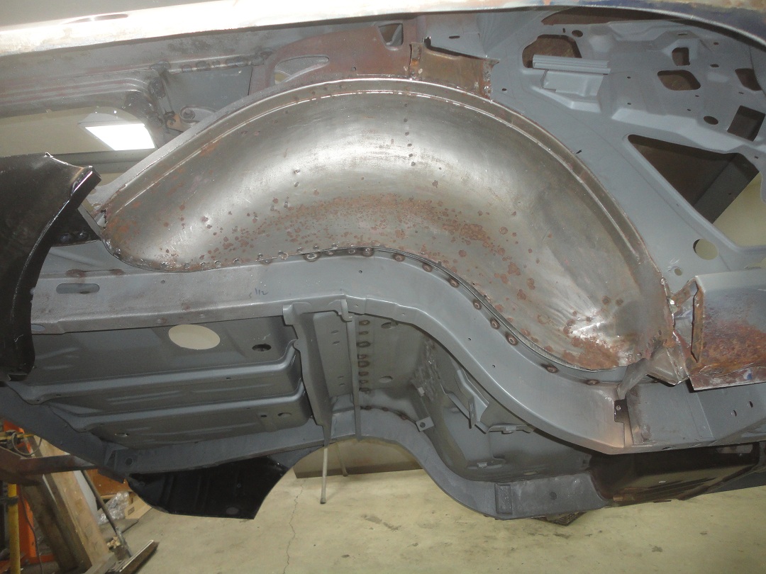 101) With the repairs completed (less the actual quarter panel), the inside was primed with epoxy primer.