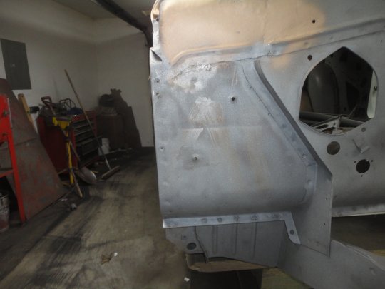 134) Then I had to make a new end piece that was ruined by the body shop. In this picture I was fitting the new piece in place prior to buttwelding it to the filler panel.