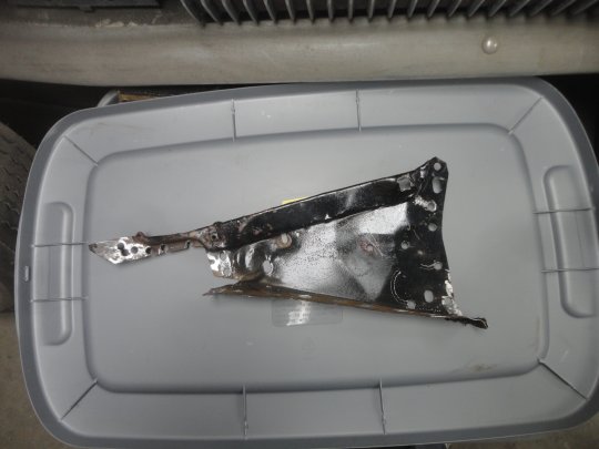 133) The first thing I had to do was remove the right hand radiator support filler panel. I spent a lot of time flattening it back out.