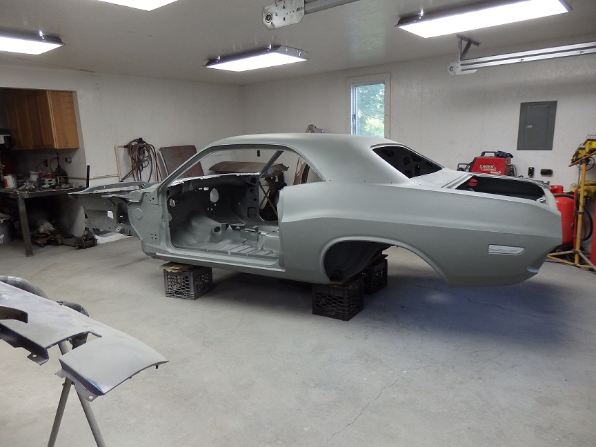 155) Here is the completed shell, ready to come off from the rotisserie. I primed the shell in four different stages. In order: Engine Compartment, Interior, Exterior and undercarriage.