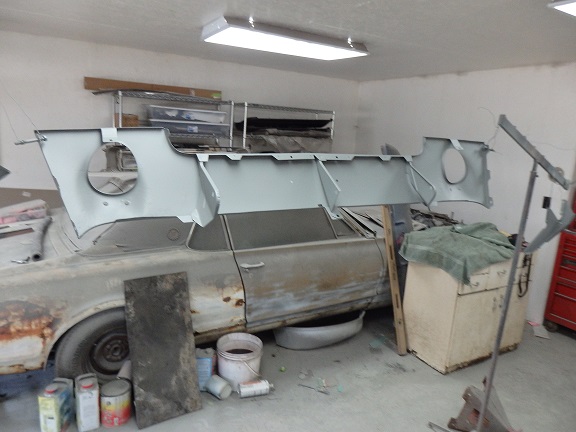 197) In this picture you can see the trunklid hung from the ceiling. This is how I performed all of the repairs on the underside. It was the best way to manage the seam repairs.