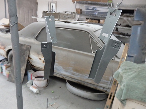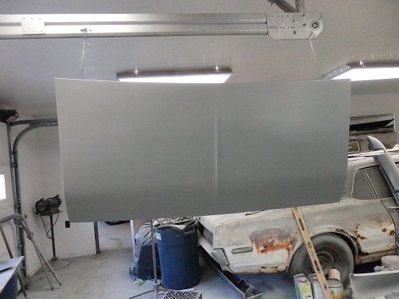 193) Here it is with 3 coats of DP40LF Epoxy primer and ready to install on the car. The hinges only needed to be sandblasted and primed. I removed the springs from the hinges primer to priming. I gave them 1 coat with the hinges closed and another coat with the hinges opened.