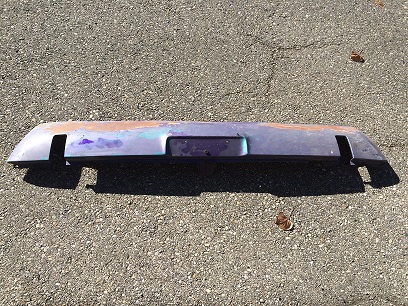 194) The trunklid needed a bit of work. The bottom seam was quite rusted on the underside and there was a factory "correction" that needed fixing. In this picture you can see an area, perhaps a foot long, where the metal was heated and folded. This was found under the original paint, which makes this a factory repair. It appears that there was a defect in the panel that they had to heat up and pound down to close the trunk lid all the way. This was easy for me to clean up. I just mig welded along the lenght of it and ground it down.