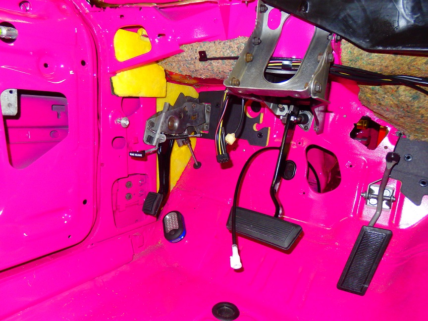 283) They pedal support, gas pedal and parking brake assembly go in quickly. One thing to note is that the emergency brake cable had to be connected to the parking brake assembly