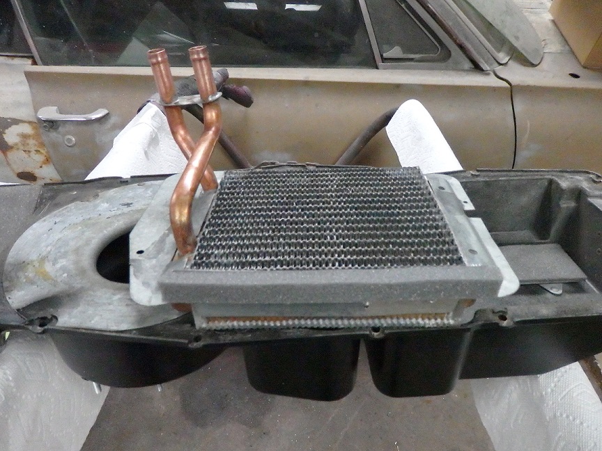 272) The original A/C evaporator was jsut cleaned up and reinstalled. It bolts to the other half of the heater box.