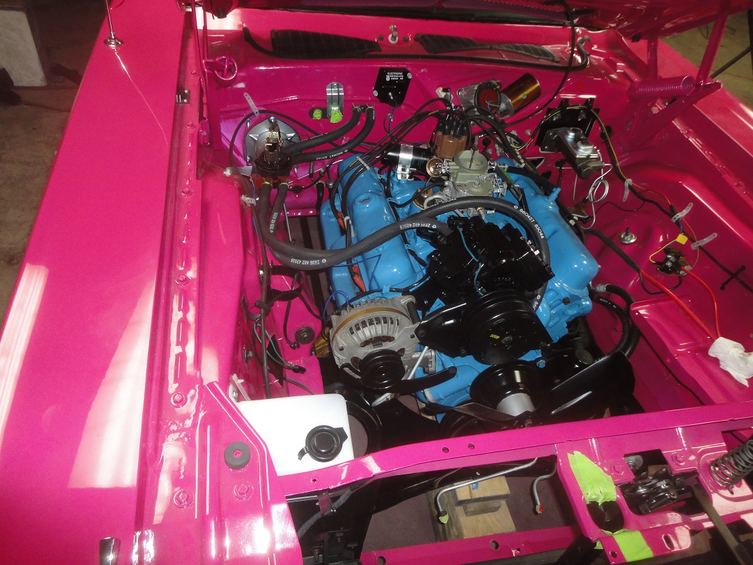 358) Before installing the engine, it's a good idea to get as much of the engine compartment components installed as possible. Remember, the steering column should not be installed until after the engine is in.