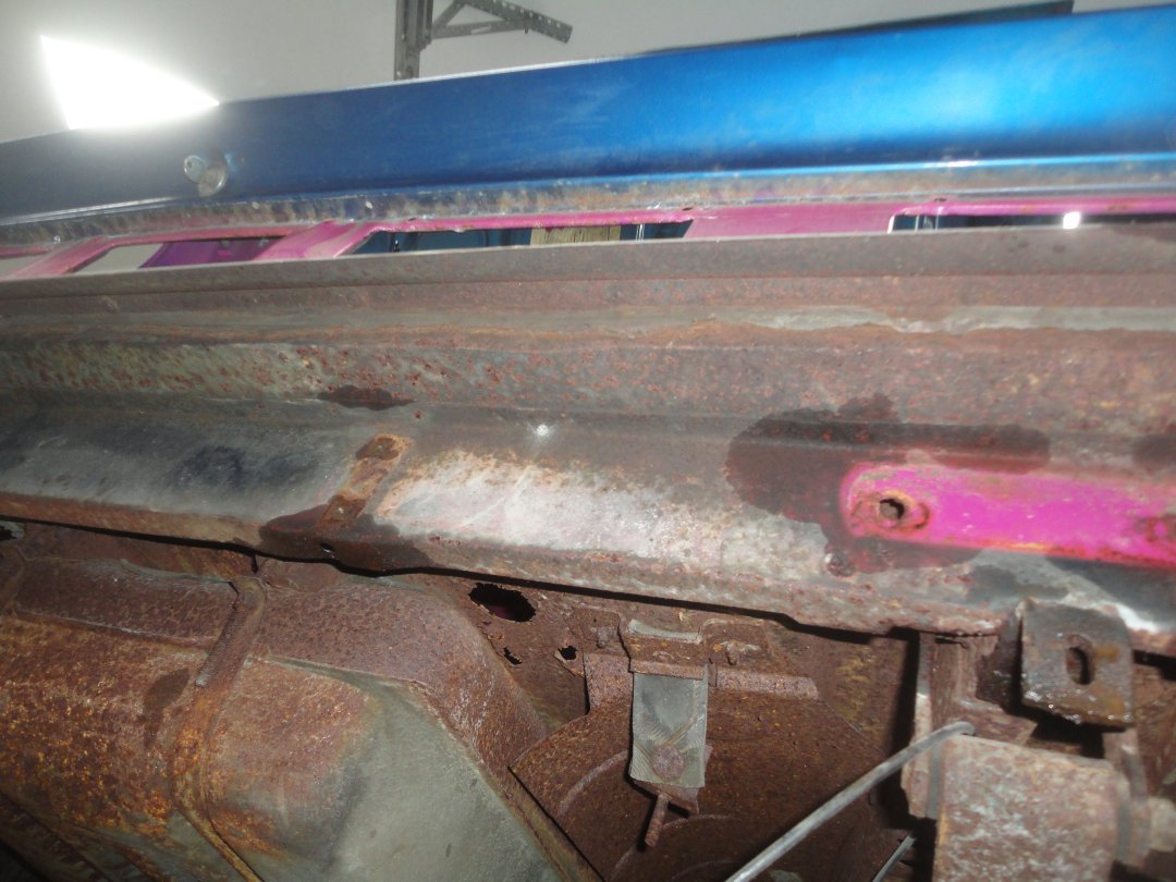 From the inside the trunk pan and the trunk floor extensions were pretty shot. There were plent of rust holes on the driver's side floor pan, front and rear. The passenger side looked pretty decent, but once you hit things with a sandblaster, those nasty rust holes would probably make an appearance just like they always do.