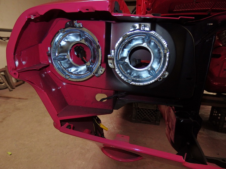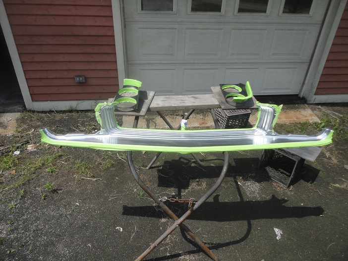 first picture you can see the grill surround and the new repo headlight bezels prep'd for painting.