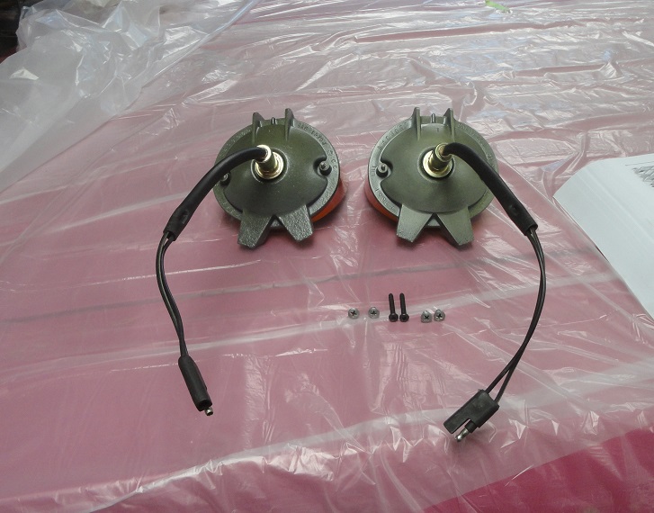382) The parking lamps needed new pigtails and some freshening up. I bead blasted the housings and painted them. To get the original yellow chromate look I just misted on some of the leftover Quasmoline that I used