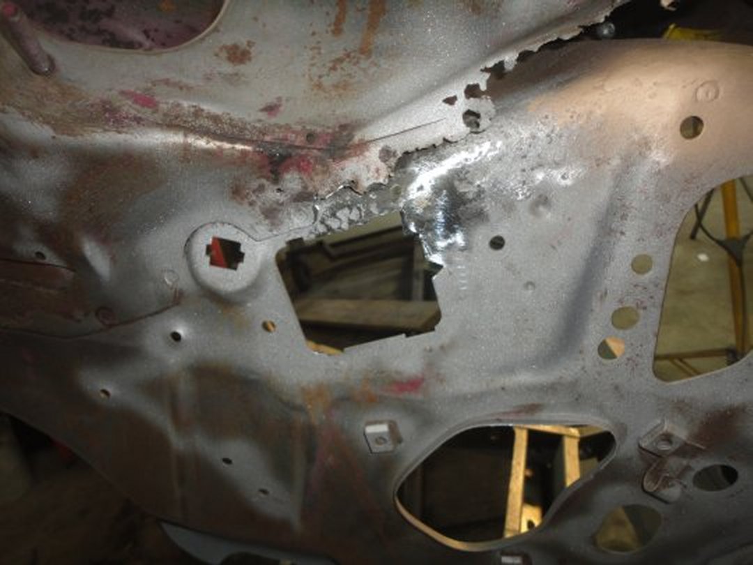16) There was a rusted out section where the cowl panel met the firewall. It could only be seen form inside the car, but it still needed to be