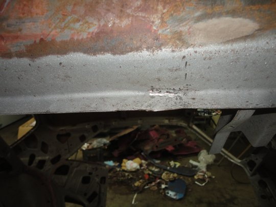 6) The outer rocker panels are supposed to have 4 drain gutters in them. On this car someone had flattened one out.