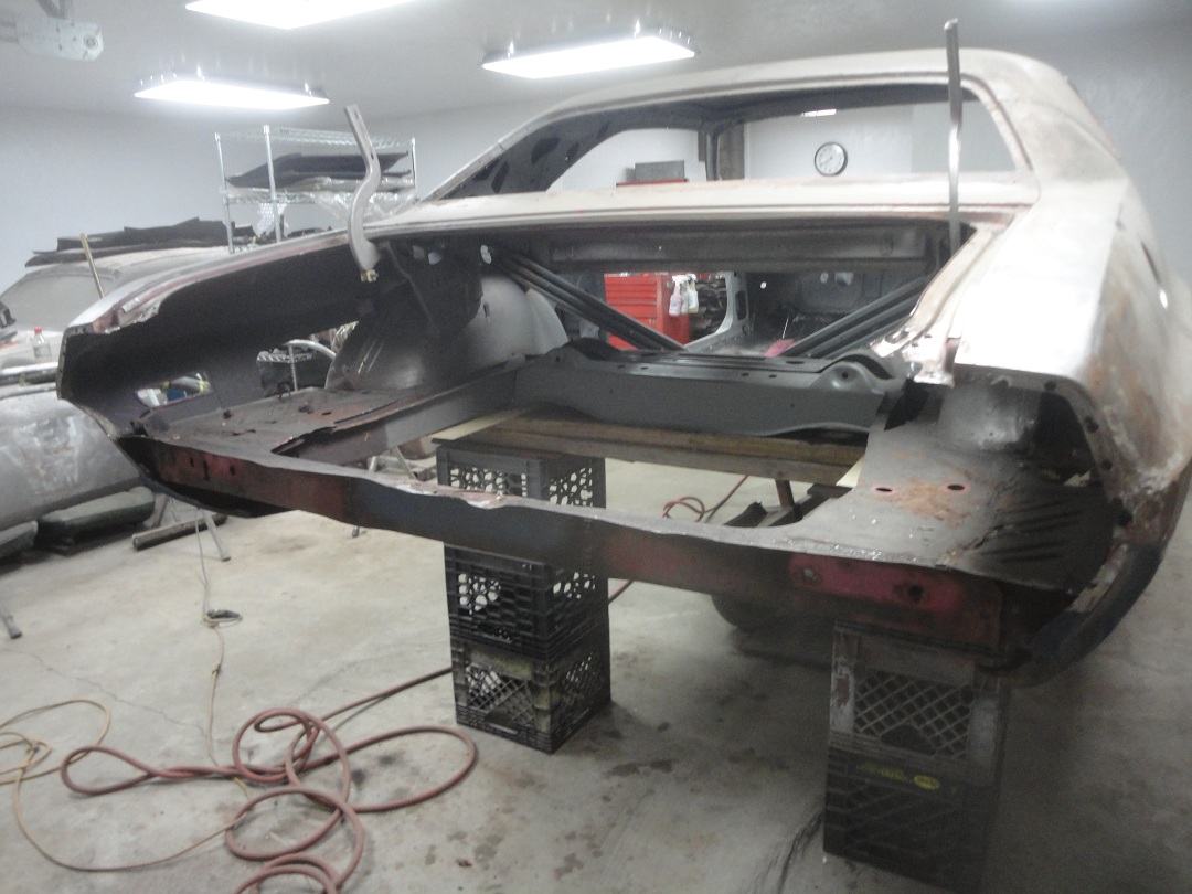 of the trunk pan to fit to the rear of the rear seat floor pan. The humps above the shocks were about an 1/4 higher on