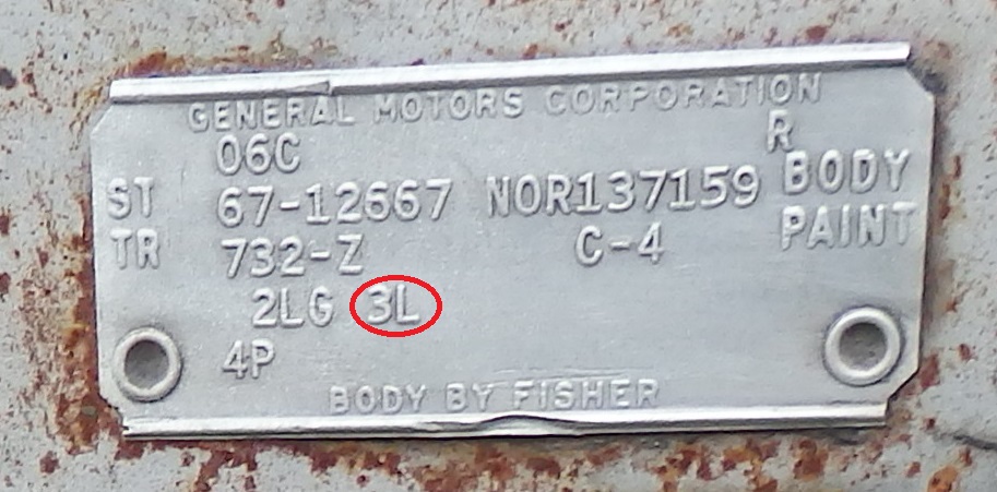 The remaining line of codes (when present) lists the car's major options. 1968-69 cowl tags do not have these codes and therefore makes it harder to identify whether installed options
