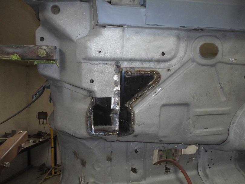 The seat reinforcements where notched out when the frame reinforcements were added. I butt-welded in new sections cut from a new seat reinforcement instead of replacing the whole thing.