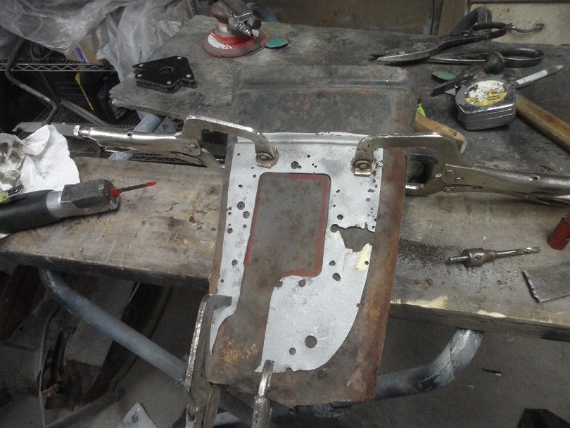 The firewall was quite a mess. I had a lot of holes to weld up. I also had two patches to put in. One at the the center and the other below the cowel tag. It was important to know at this point, which holes