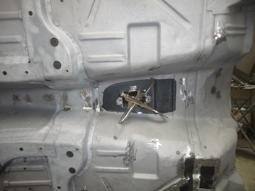 The transmission tunnel was really butchered. The car came with a transmission tunnel from another car, so I used the section with the original shifter opening to cut the opening in the replacement section. Then I butt-welded the replacement