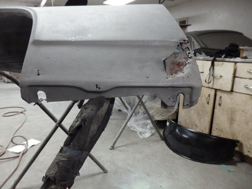 I started with the best used 1967 fender I could find at Camaro Specialties. As one would expect by all those colors, it had been previously worked on. The second pictures shows the worst