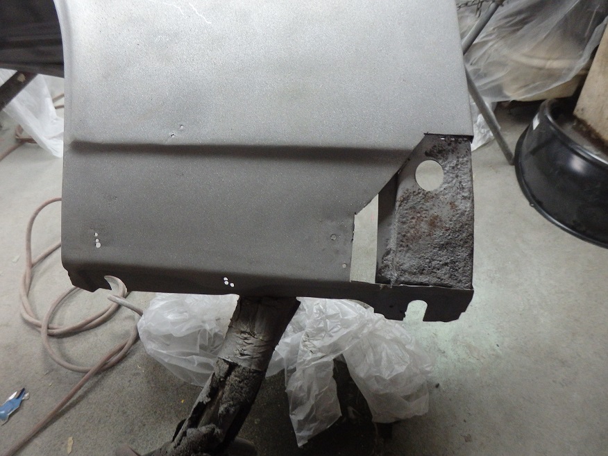 of, which was uncovered after sandblasting. To fix it , I purchased an AMD lower fender repair panel and butt-welded in only the section I needed. The repair panel had the correct