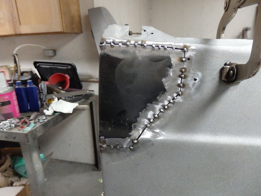get the patch properly aligned before welding. I did not have much filler work to add to the fender to smooth out the fender on both sides after the welds were ground down.