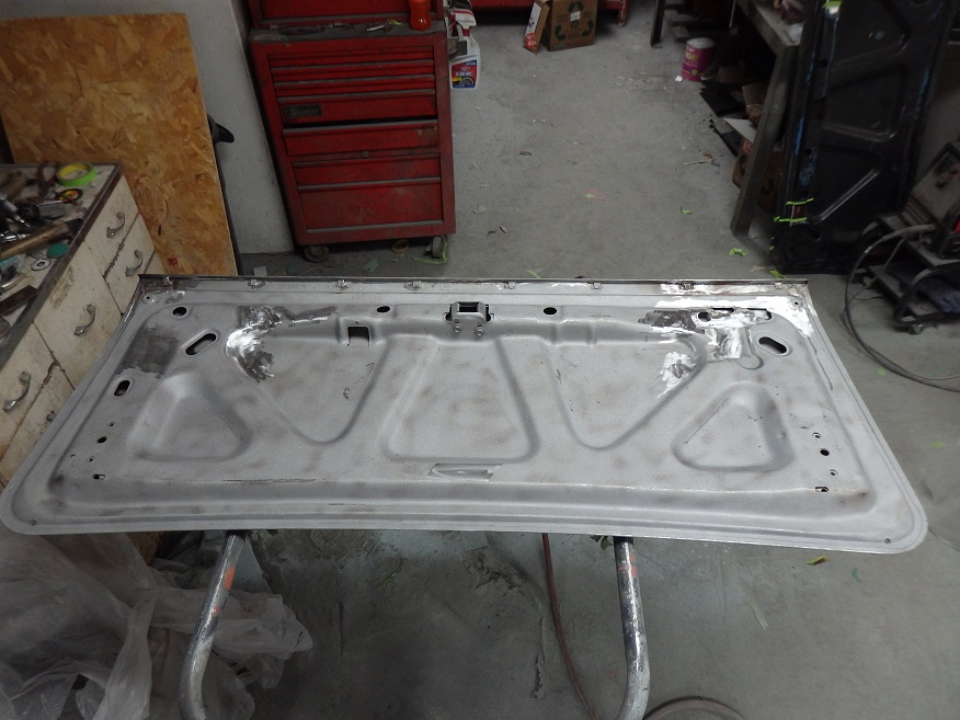 access holes (top right corner). I had also started welding up the spoiler holes. In the third picture I had completed all of the welding. Now it looks like the late-67 trunklid style (introduced Feb/March 1967).