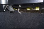 screwed to the floor and the front emergency brake cable is fed through the floor. Since the carpet needs to be trimmed for the dimmer switch and emergency brake cable, this is the easiest way to do it.