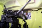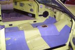 The first thing that goes in is the kick panel vents followed by the left section of the firewall insulation. The dimmer switch is then