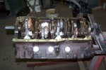 and rebuilt with new valve guides, seals and valves. Here's the block on my motor stand waiting to be assembled.