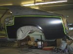 In this picture all of the work is done. The quarter is wiped down and is masked for the primer coat. |