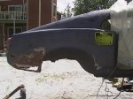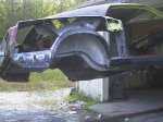 In this picture the remainder of the outer wheel well has been removed and lower trunk extension has been cut off. Prior to sandblasting the wheel well undercoating