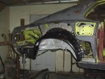 plug or the reverse light wires. Here the new outer wheel well has just been fitted in place. Again the new quarter skin was used to
