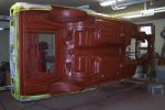 The next step in the process is to prime and paint the interior of the car body color, prime and paint the engine compartment semi-flat black and to prime the undercarriage. The undercarriage gets special detailing