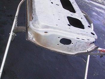 over. I popped the two spot welds that were located on the inside at the top on each end with a chisel. I then took a torch and melted
