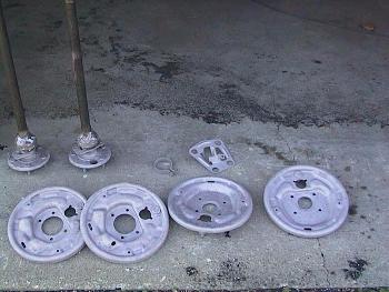 I also sandblasted the backing plates and the ends of the axle shafts. The axle bearings were wrapped in duct tape to keep the