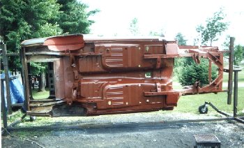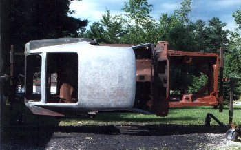 With the body turned on its side the roof was easily stripped. I use a chemical stripper to take off