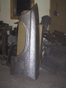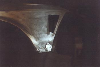 The left front fender that came with the car wasn't usable. It had a couple large holes that were filled with chopped fiberglass.