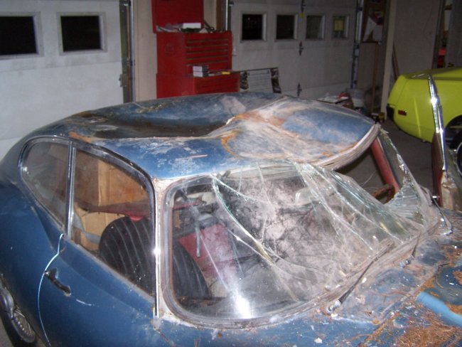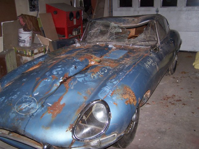 The XK150 Roadster was saved and was later restored (later to appear in Hemmings Classic Sports Car magazine). The XKE was considered a "Total Loss" by the insurance company and was sent to the insurance auctions. My father spotted the car while bidding on other collisions pieces and was able to get it for only $750 plus the buyer's fee. After sitting on it for a while he decided that he would never restore it, so I took it off his hands for $1200.