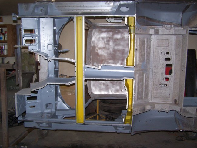 The next bit of fun was the welding of the frame brackets to the inner rocker panel. Ideally the floor pan should be clamped in place and the engine frames should be used to set their location. I couldn't