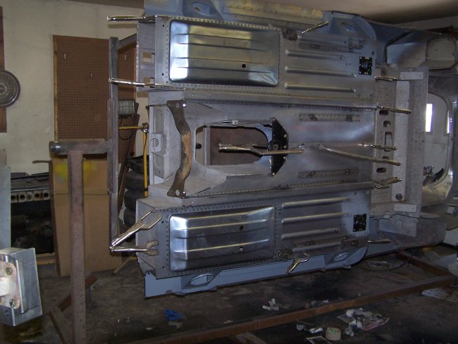 quite do that with my setup. I did take a measurement of the distance between the transmission tunnel side of the front bulkheads to the inner rocker panel. 13-1/4". So I knew where to place the inner bracket for
