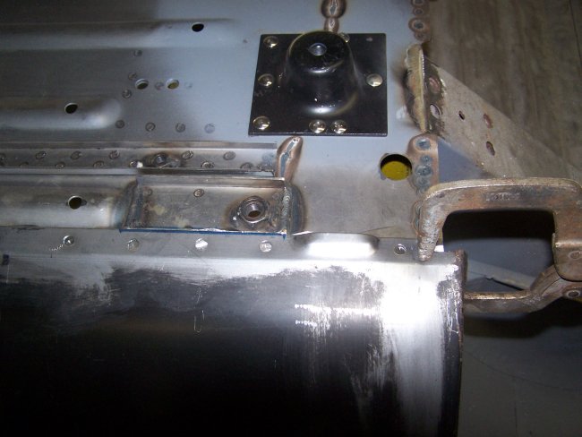 The next step is to weld the floorpan sections together, because they come in two parts. The important thing to remember is that the reaction plate needs to be installed to set the correct