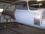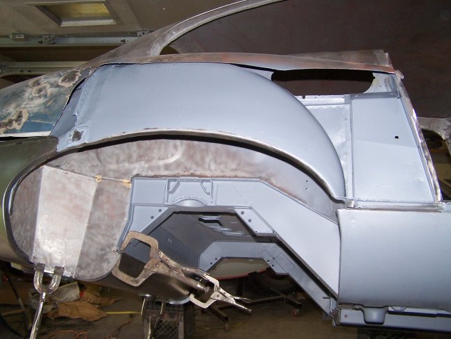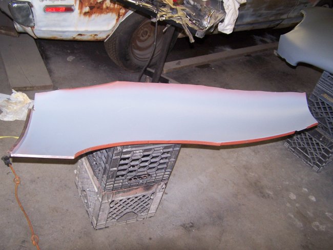 The part of the wing I needed was the same. In the second picture above you can see that I cut off the roadster specific portion of the panel. I also removed the factory primer and coated it with epoxy primer. In the third picture