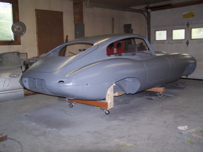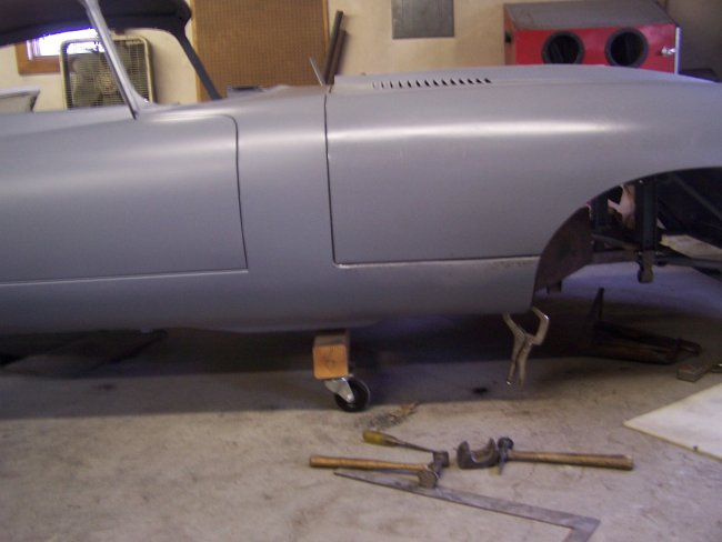 is that when you look down the side of the car, all of the panels are in perfect alignment. Once I was satisfied with the alignment, a couple coats of PPG DP50LF epoxy primer was applied.