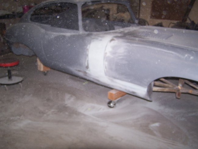 even out the errors in my lead work. A thin coat of Evercoat polyester filler was then used to make the rocker and front filler panel (the panel inbetween the door and bonnet) even. The goal