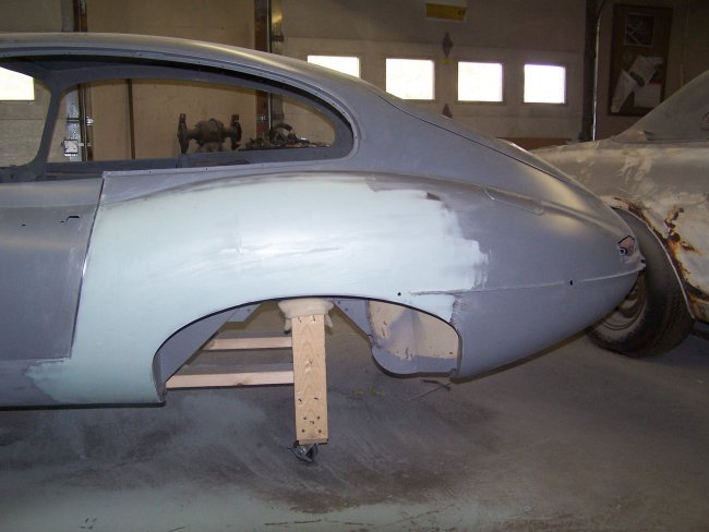 coat of Evercoat Polyester filler. I then blocked it with the door properly aligned. With a couple coats of PPG DP50LF epoxy primer, the bodywork was officially completed on June 2, 2010. Exactly