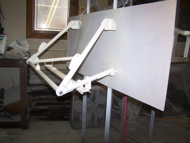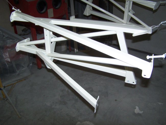 Here are some pictures of the engine and bonnet support structure after painting. I had to paint them after the rest of the car was painted due to the space limitation in my garage.